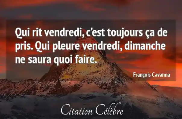 Qui rit vendredi, c'est toujours ça de pris. Qui pleure vendredi, dimanche ne saura quoi faire.
