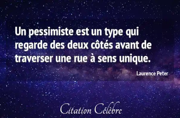 Un pessimiste est un type qui regarde des deux côtés avant de traverser une rue à sens unique.