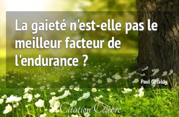 La gaieté n'est-elle pas le meilleur facteur de l'endurance ?