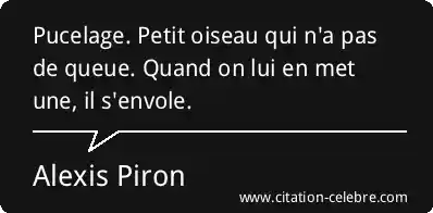 Pucelage. Petit oiseau qui n'a pas de queue. Quand on lui en met une, il s'envole.