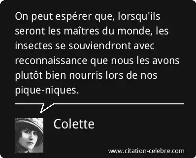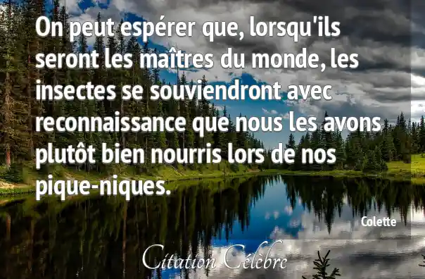 On peut espérer que, lorsqu'ils seront les maîtres du monde, les insectes se souviendront avec reconnaissance que nous les avons plutôt bien nourris lors de nos pique-niques.