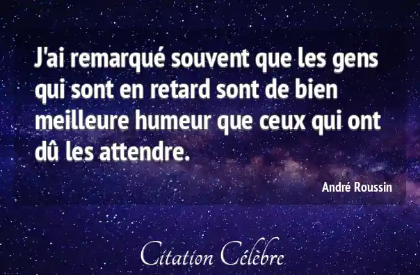 J'ai remarqué souvent que les gens qui sont en retard sont de bien meilleure humeur que ceux qui ont dû les attendre.