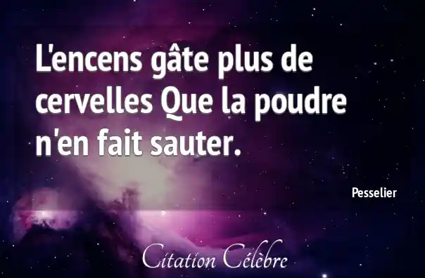 L'encens gâte plus de cervelles Que la poudre n'en fait sauter.