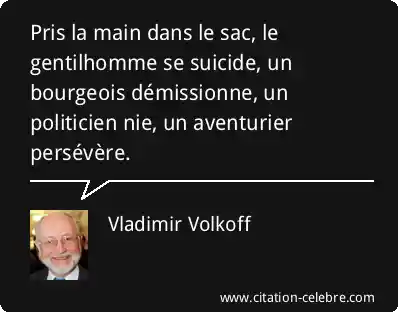 Pris la main dans le sac, le gentilhomme se suicide, un bourgeois démissionne, un politicien nie, un aventurier persévère.