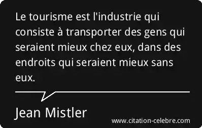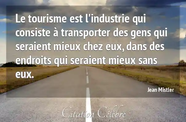 Le tourisme est l'industrie qui consiste à transporter des gens qui seraient mieux chez eux, dans des endroits qui seraient mieux sans eux.