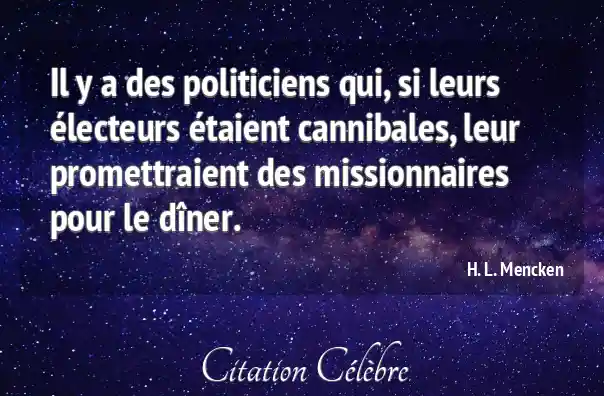 Il y a des politiciens qui, si leurs électeurs étaient cannibales, leur promettraient des missionnaires pour le dîner.
