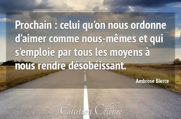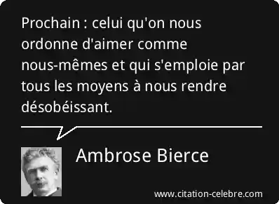 Prochain : celui qu'on nous ordonne d'aimer comme nous-mêmes et qui s'emploie par tous les moyens à nous rendre désobéissant.