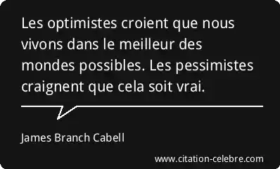 Les optimistes croient que nous vivons dans le meilleur des mondes possibles. Les pessimistes craignent que cela soit vrai.