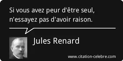 Citation Jules Renard avoir : Si vous avez peur d'être seul, n'essayez pas d'avoir raison....