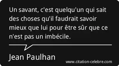 Un savant, c'est quelqu'un qui sait des choses qu'il faudrait savoir mieux que lui pour être sûr que ce n'est pas un imbécile.