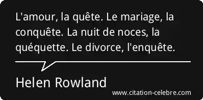 L'amour, la quête. Le mariage, la conquête. La nuit de noces, la quéquette. Le divorce, l'enquête.