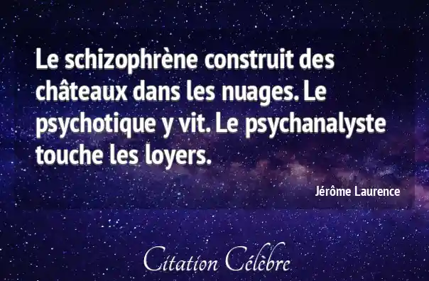 Le schizophrène construit des châteaux dans les nuages. Le psychotique y vit. Le psychanalyste touche les loyers.