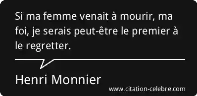 Si ma femme venait à mourir, ma foi, je serais peut-être le premier à le regretter.