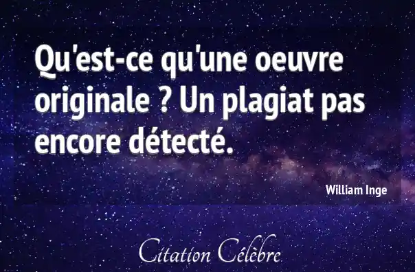 Qu'est-ce qu'une oeuvre originale ? Un plagiat pas encore détecté.