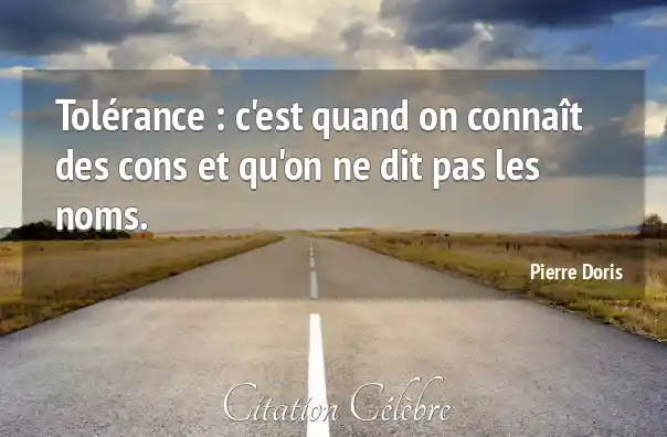 Tolérance : c'est quand on connaît des cons et qu'on ne dit pas les noms.