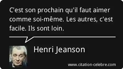 C'est son prochain qu'il faut aimer comme soi-même. Les autres, c'est facile. Ils sont loin.