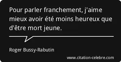 Pour parler franchement, j'aime mieux avoir été moins heureux que d'être mort jeune.