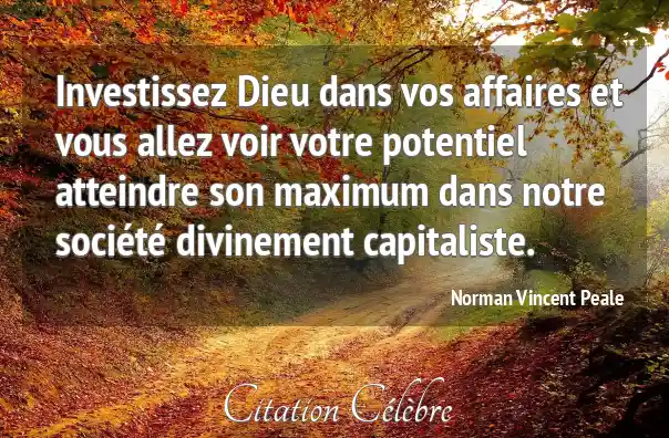 Investissez Dieu dans vos affaires et vous allez voir votre potentiel atteindre son maximum dans notre société divinement capitaliste.