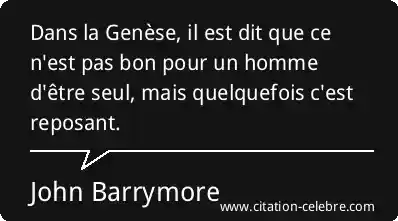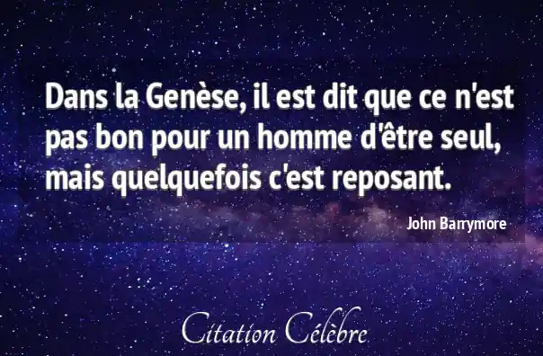 Dans la Genèse, il est dit que ce n'est pas bon pour un homme d'être seul, mais quelquefois c'est reposant.