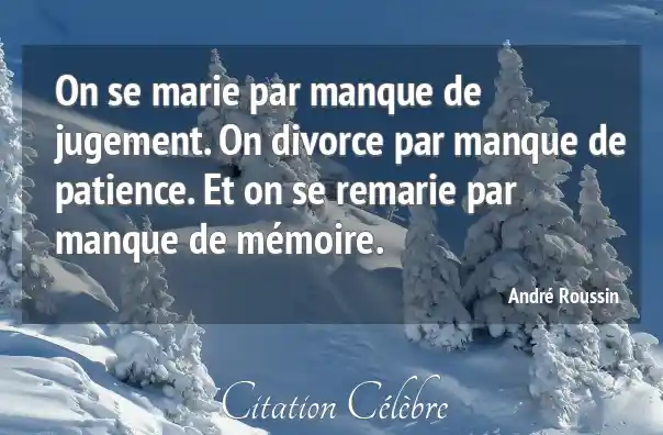 On se marie par manque de jugement. On divorce par manque de patience. Et on se remarie par manque de mémoire.