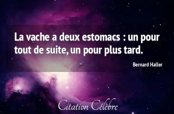 La vache a deux estomacs : un pour tout de suite, un pour plus tard.