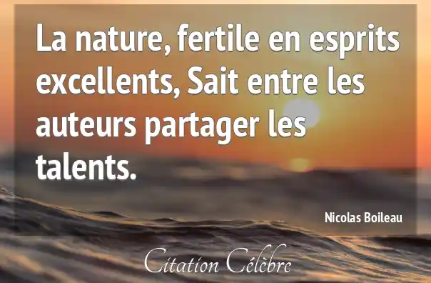 La nature, fertile en esprits excellents, Sait entre les auteurs partager les talents.