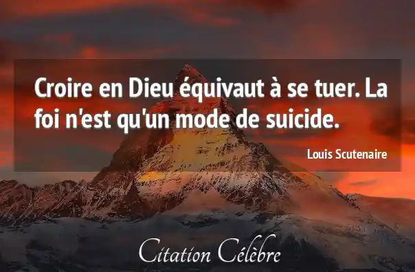 Croire en Dieu équivaut à se tuer. La foi n'est qu'un mode de suicide.