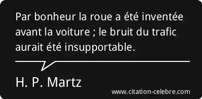 Par bonheur la roue a été inventée avant la voiture ; le bruit du trafic aurait été insupportable.