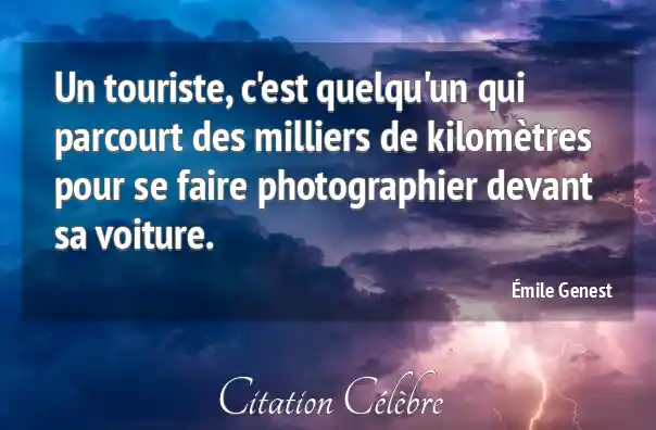 Un touriste, c'est quelqu'un qui parcourt des milliers de kilomètres pour se faire photographier devant sa voiture.