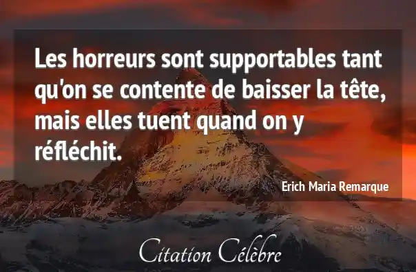 Les horreurs sont supportables tant qu'on se contente de baisser la tête, mais elles tuent quand on y réfléchit.
