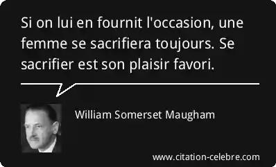 Si on lui en fournit l'occasion, une femme se sacrifiera toujours. Se sacrifier est son plaisir favori.