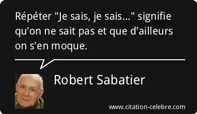 Répéter "Je sais, je sais..." signifie qu'on ne sait pas et que d'ailleurs on s'en moque.