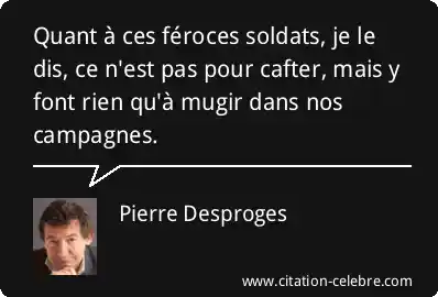 Quant à ces féroces soldats, je le dis, ce n'est pas pour cafter, mais y font rien qu'à mugir dans nos campagnes.