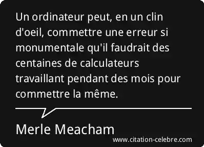 Un ordinateur peut, en un clin d'oeil, commettre une erreur si monumentale qu'il faudrait des centaines de calculateurs travaillant pendant des mois pour commettre la même.