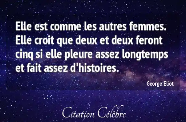 Elle est comme les autres femmes. Elle croit que deux et deux feront cinq si elle pleure assez longtemps et fait assez d'histoires.