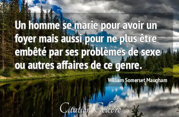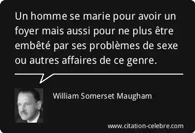 Un homme se marie pour avoir un foyer mais aussi pour ne plus être embêté par ses problèmes de sexe ou autres affaires de ce genre.
