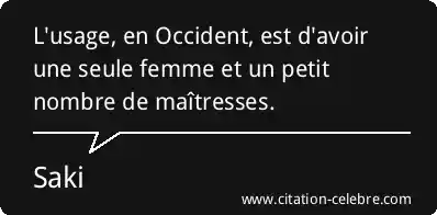 L'usage, en Occident, est d'avoir une seule femme et un petit nombre de maîtresses.