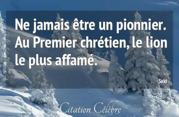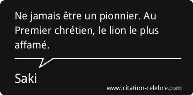 Ne jamais être un pionnier. Au Premier chrétien, le lion le plus affamé.
