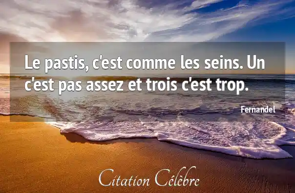 Le pastis, c'est comme les seins. Un c'est pas assez et trois c'est trop.