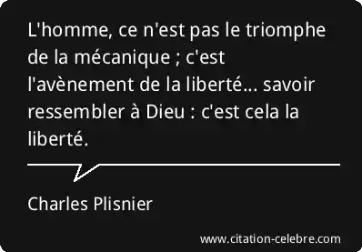 L'homme, ce n'est pas le triomphe de la mécanique ; c'est l'avènement de la liberté... savoir ressembler à Dieu : c'est cela la liberté.