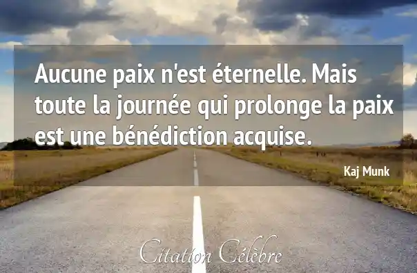 Aucune paix n'est éternelle. Mais toute la journée qui prolonge la paix est une bénédiction acquise.