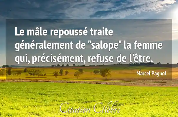 Citation Marcel Pagnol femme : Le mâle repoussé traite généralement de