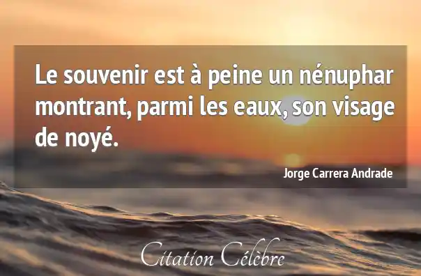 Le souvenir est à peine un nénuphar montrant, parmi les eaux, son visage de noyé.