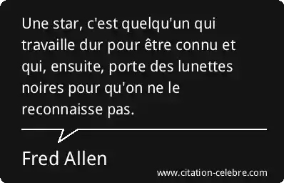 Une star, c'est quelqu'un qui travaille dur pour être connu et qui, ensuite, porte des lunettes noires pour qu'on ne le reconnaisse pas.