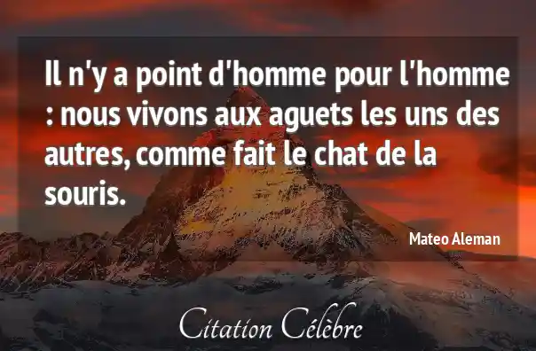 Il n'y a point d'homme pour l'homme : nous vivons aux aguets les uns des autres, comme fait le chat de la souris.