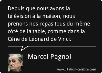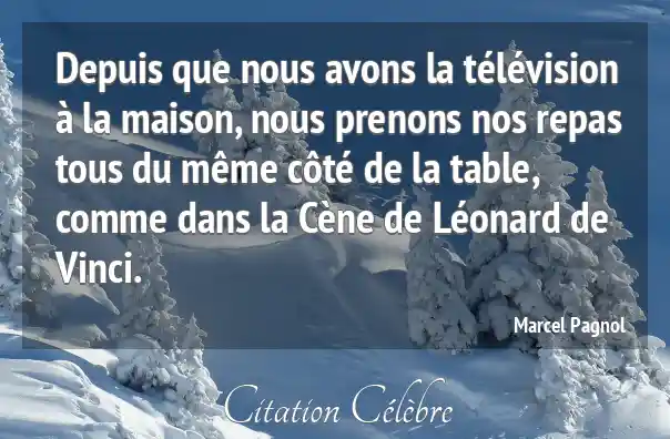 Depuis que nous avons la télévision à la maison, nous prenons nos repas tous du même côté de la table, comme dans la Cène de Léonard de Vinci.