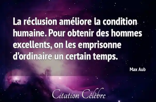 La réclusion améliore la condition humaine. Pour obtenir des hommes excellents, on les emprisonne d'ordinaire un certain temps.