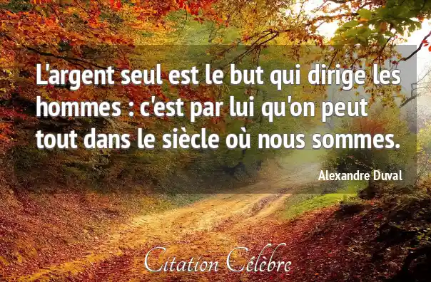 L'argent seul est le but qui dirige les hommes : c'est par lui qu'on peut tout dans le siècle où nous sommes.