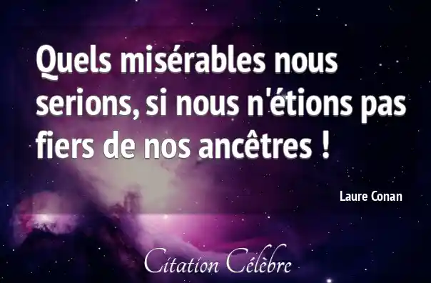 Quels misérables nous serions, si nous n'étions pas fiers de nos ancêtres !
