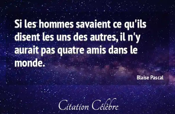 Si les hommes savaient ce qu'ils disent les uns des autres, il n'y aurait pas quatre amis dans le monde.